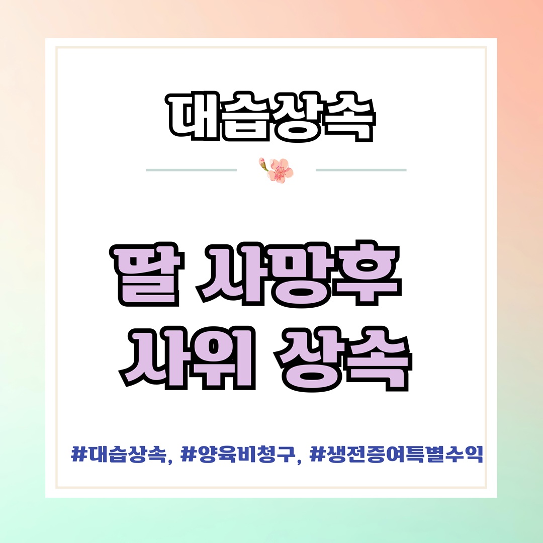 딸 사망한 뒤 재혼한 사위도 상속을 받는다고? 대습상속이란. 오늘은 자녀가 부모보다 먼저 사망했을 때 사위나 며느리의 상속권은 어떻게 되는지 알아보겠습니다. 특히 대습상속의 개념과 사위의 재혼이 상속권에 미치는 영향, 그리고 외손자를 키우는 외할머니가 양육비를 청구하는 방법까지 실제 상담 사례를 통해 구체적으로 애기해보려고 합니다