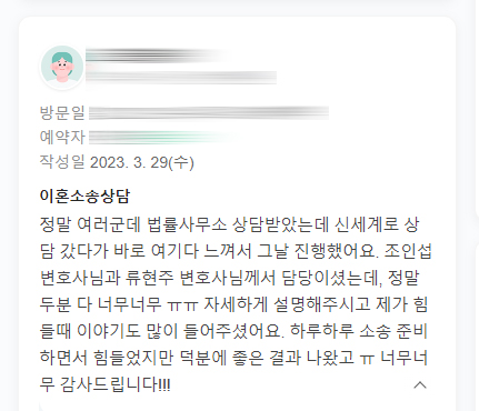 가정폭력의 피해로 이혼을 진행했던 의뢰인의 감사인사입니다